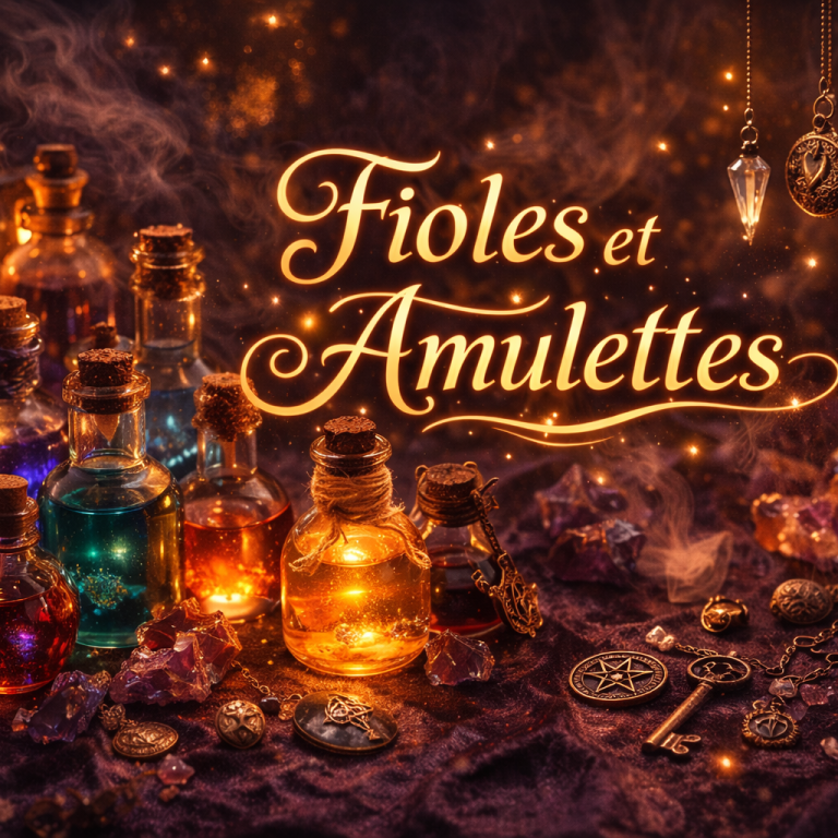 Je crée toute sorte de fioles et d’amulettes avec mes intentions les plus profondes : protection, chance, amour etc